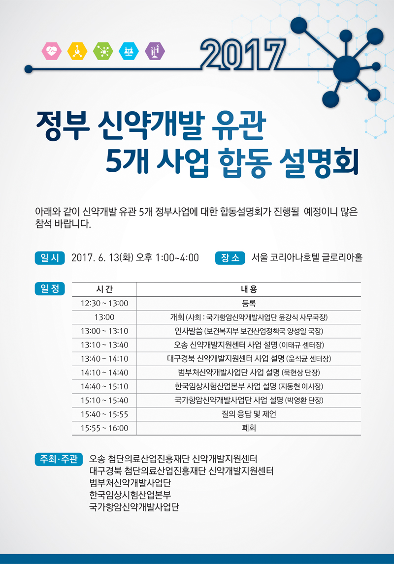 정부 신약개발 유관 5개사업 합동 설명회 개최 (6/13)