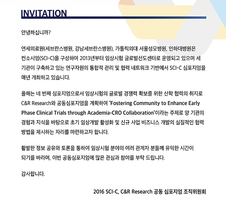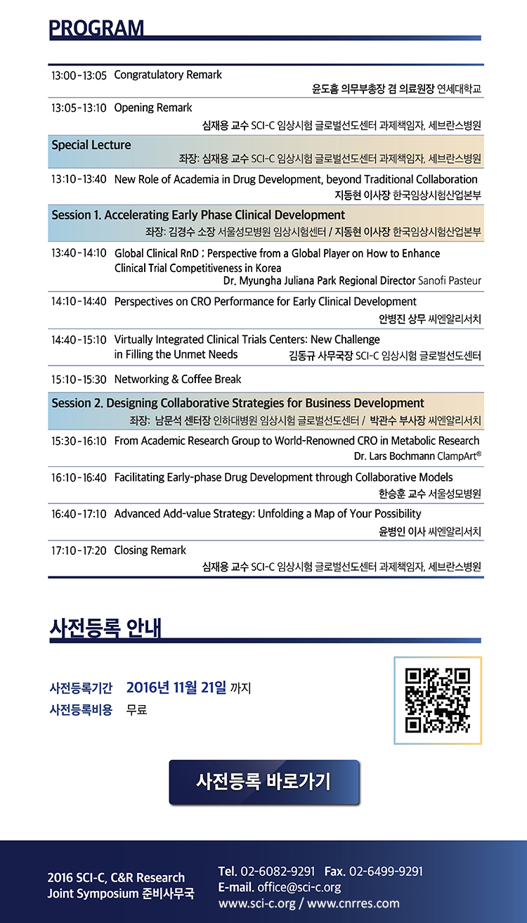 2016 SCI-C, C&R Research Joint Symposium 사전등록 안내