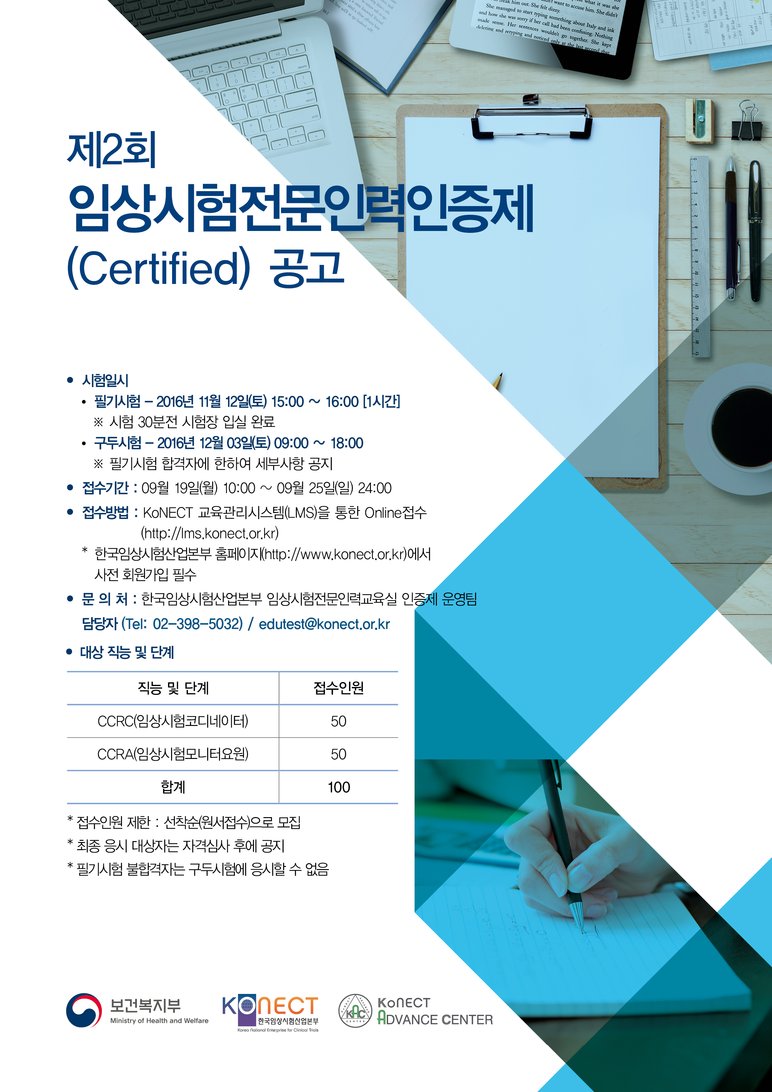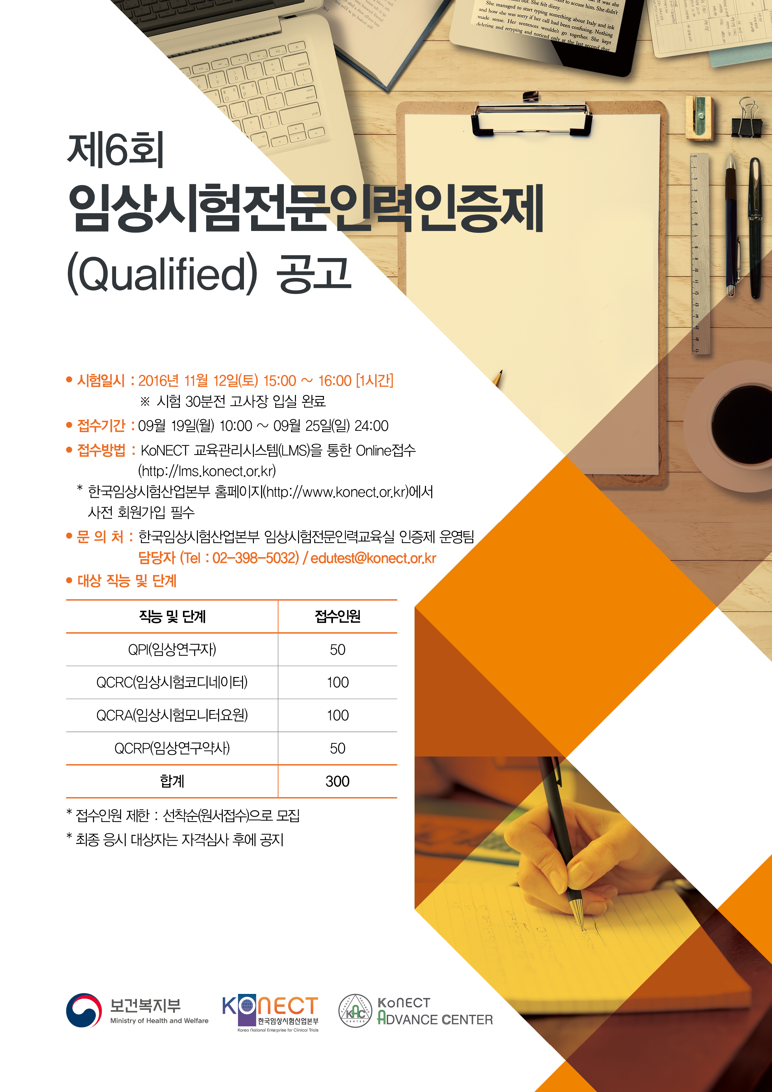 이에 『제2회 임상시험전문인력인증제(Certified)』 / 『제6회 임상시험전문인력인증제(Qualified)』 시행을 진행 할 예정입니다.