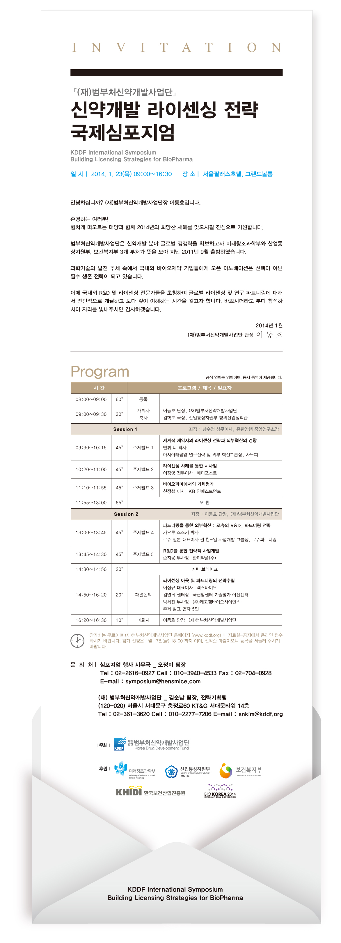 신약개발 라이센싱 전략 국제 심포지엄 개최 (하단에 등록신청)