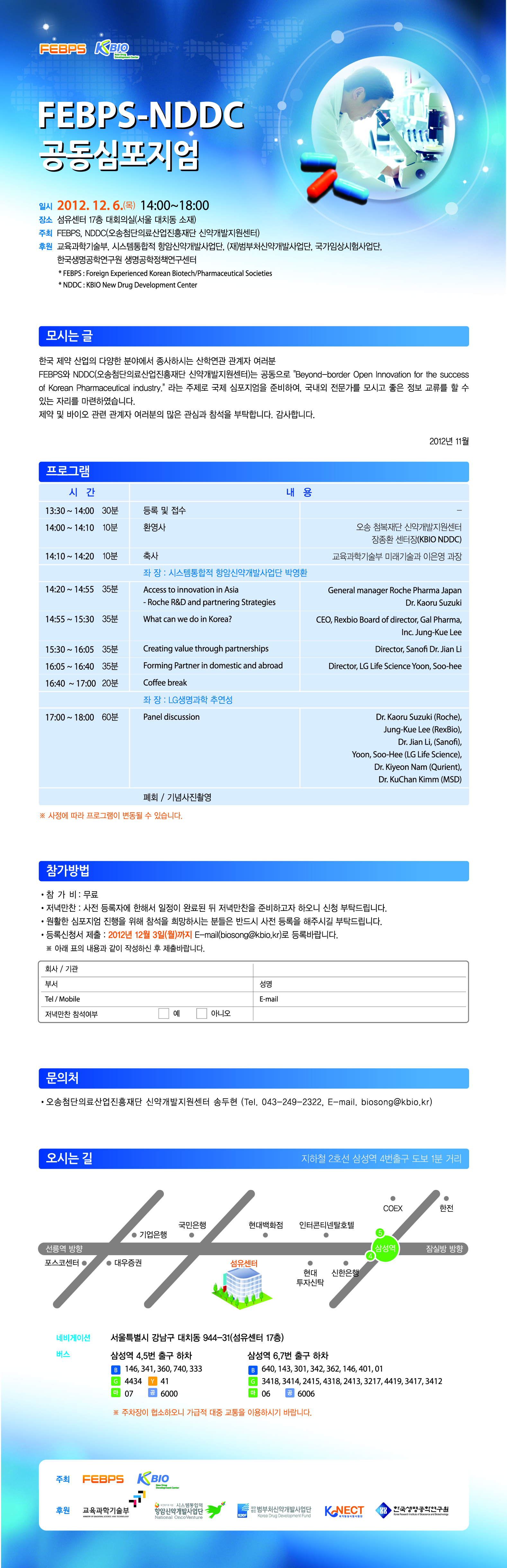 FEBPS와 NDDC(오송첨단의료산업진흥재단 신약개발지원센터) 공동으로 'Beyond-border Open Innovation for the success of Korean Pharmaceutical industry'라는 주제로 국제 심포지엄이 개최됩니다.