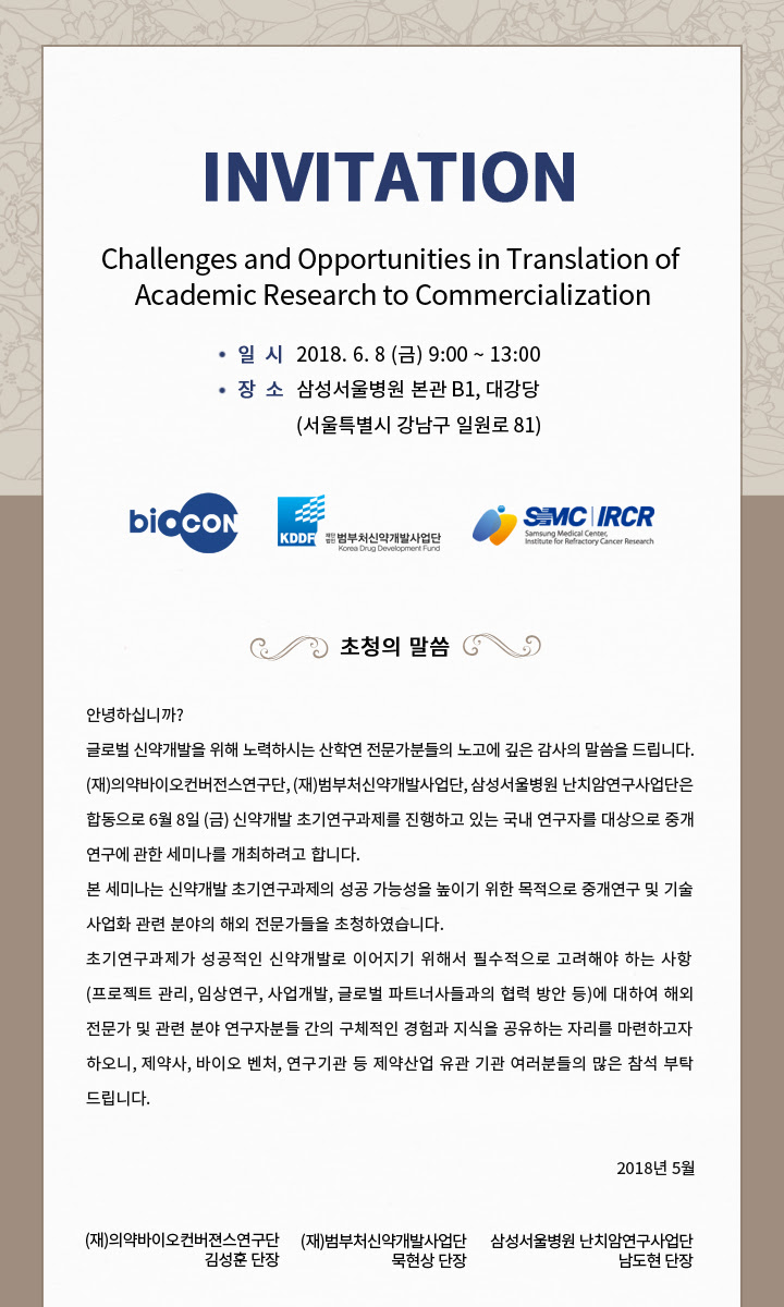 [초청] Challenges and Opportunities in Translation of Academic Research to Commercialization