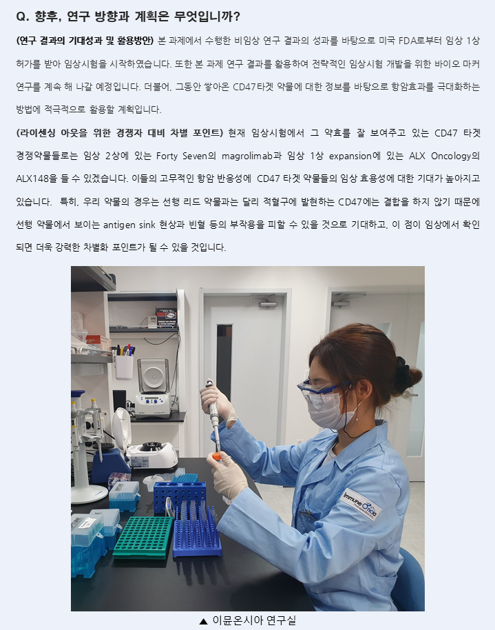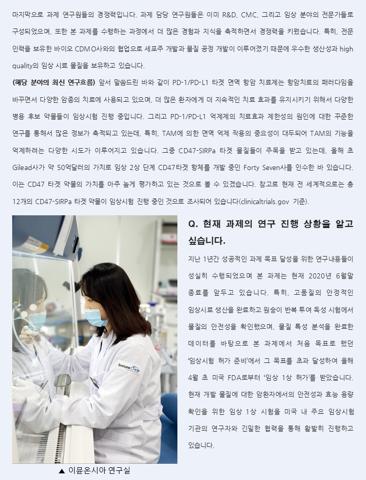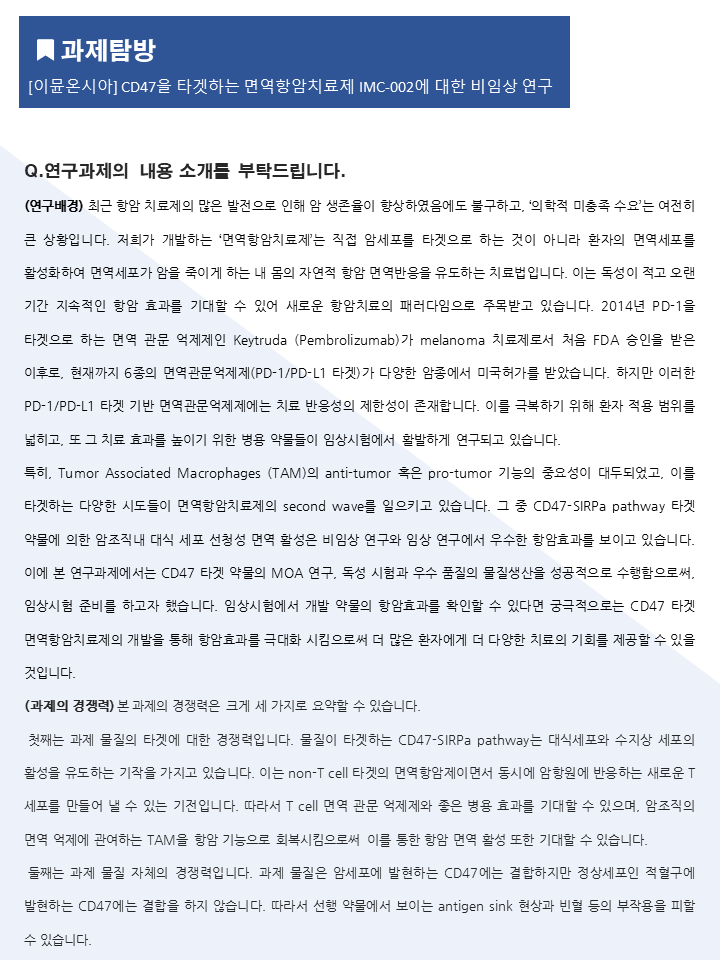 [이뮨온시아] CD47을 타겟하는 면역항암치료제 IMC-002에 대한 비임상 연구