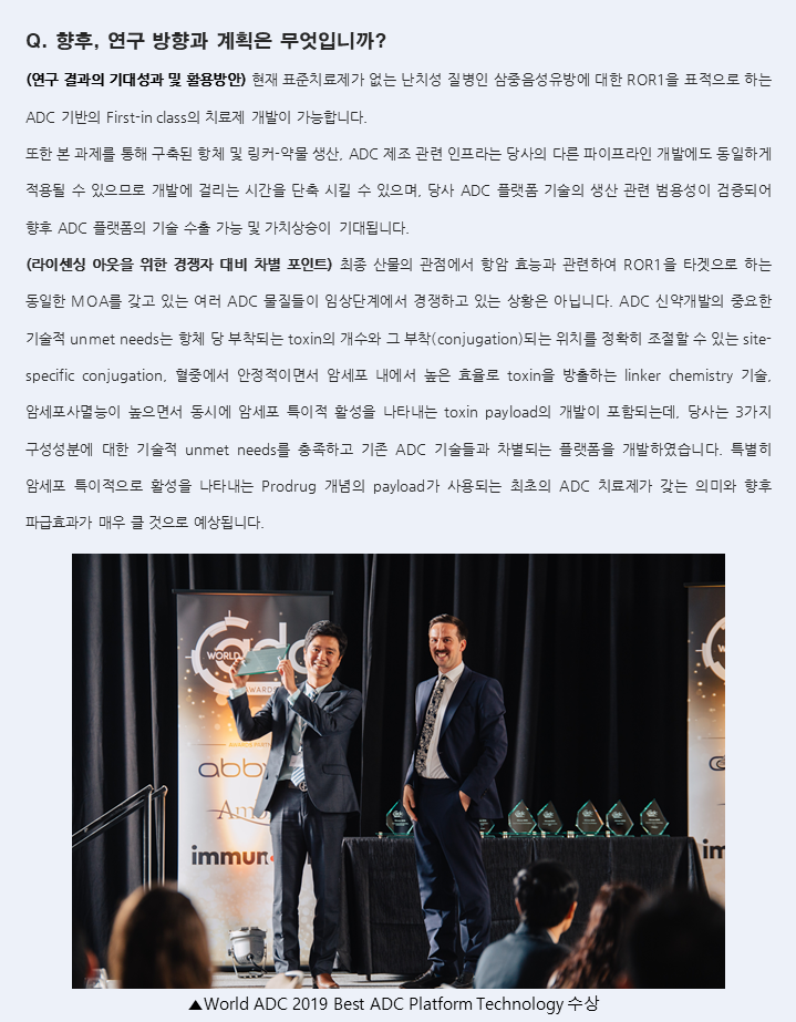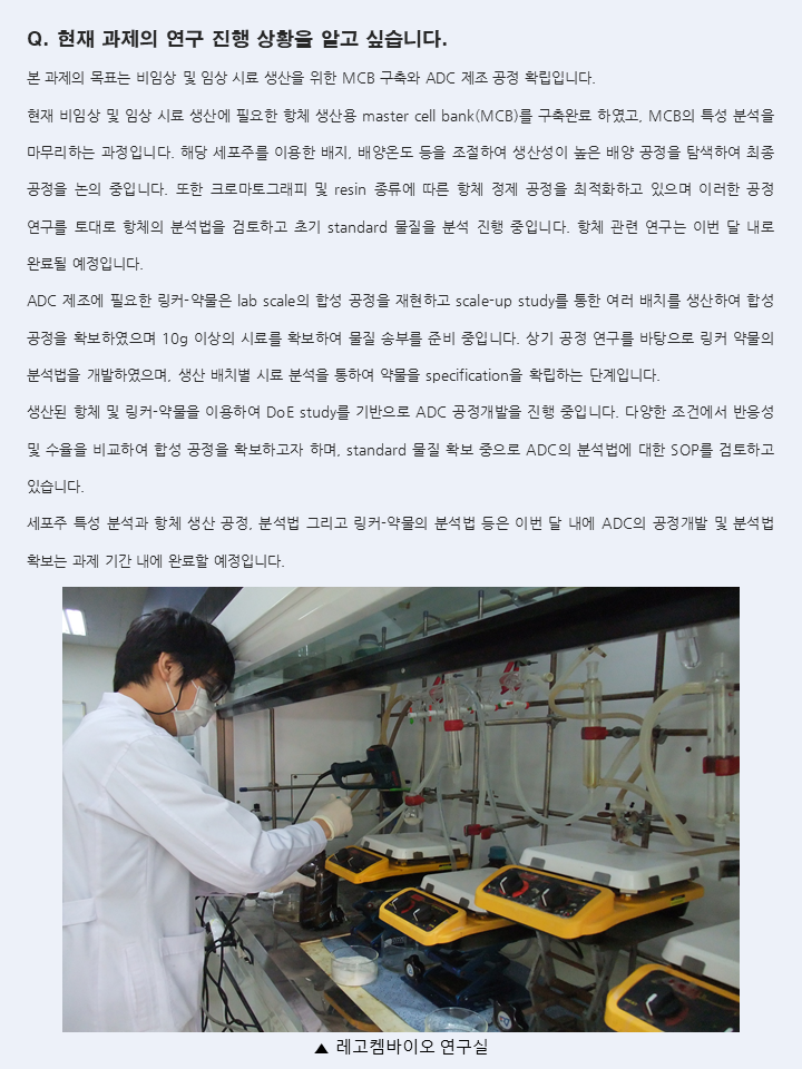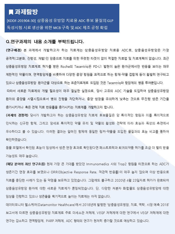 [레고켐바이오사이언스]삼중음성 유방암 치료용 ADC 후보 물질의 GLP 독성시험 시료 생산을 위한 MCB 구축 및 ADC 제조 공정 확립