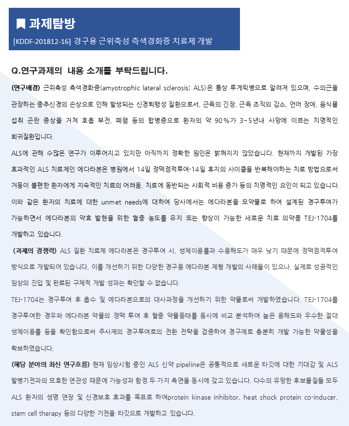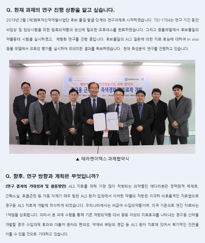 [테라젠이텍스] 경구용 근위축성 측색경화증 치료제 개발