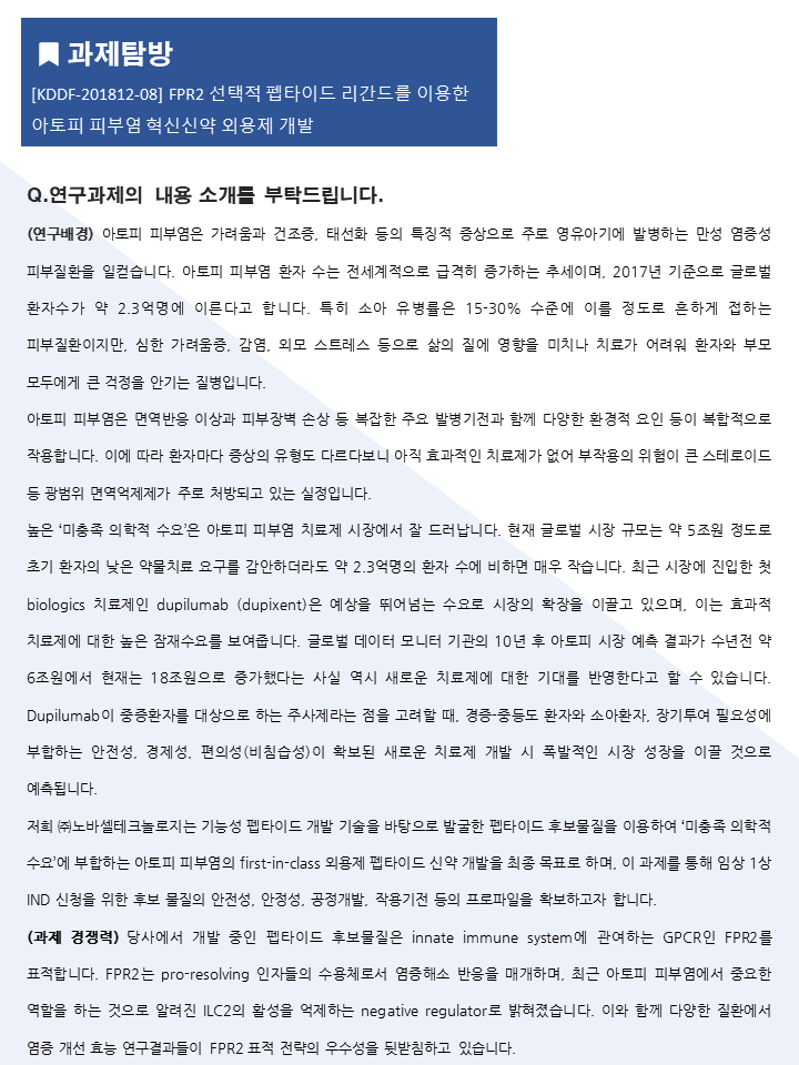 [노바셀테크놀로지] FPR2 선택적 펩타이드 리간드를 이용한 아토피 피부염 혁신신약 외용제 개발