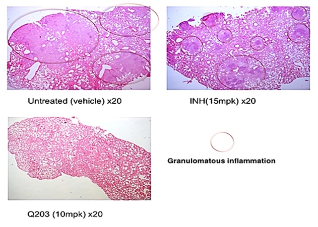 큐리언트 Q203 연구는 이같은 결핵 환자의 2차 치료제를 목표로 연구를 진행 중이다. 만성결핵모델 실험 결과, 낮은 농도에서도 강력한 효과를 보여 적은 투여용량으로 효과적인 치료가 가능할 것으로 예측되고 있다. 환자 분리 균주를 통한 시험에서 다제내성 및 광범위 내성 결핵에 대해서도 강력한 효과를 보였고, 결핵균에 대한 높은 선택성을 가짐으로 장내 세균 사멸에 의한 부작용 또한 최소로 했다.