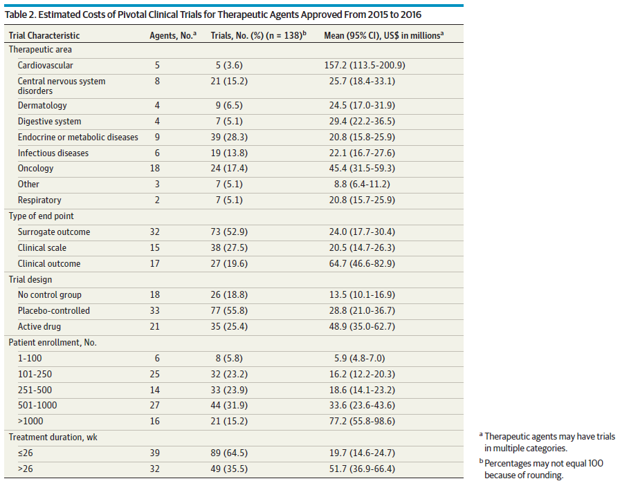 2.    Martin LHutchens MHawkins CRadnov A. Nat Rev Drug Discov. 2017 Jun;16(6):381-382. How much do clinical trials cost?