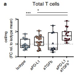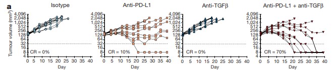 논문 모두 높은 종양미세환경(TME)에서 높은 TGFβ 발현이 T-cell exclusion 연관이 되어있음을 시사한다. , TGFβ 억제제와 PD-L1 병용 투여는, 기존 면역관문억제제에 낮은 반응률을 보이는 환자를 치료하는 새로운 전략이 있다 말한다.