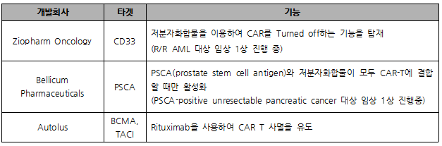 (표 4) Gene Switch CAR-T 치료제 개발 현황