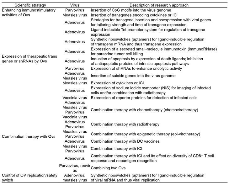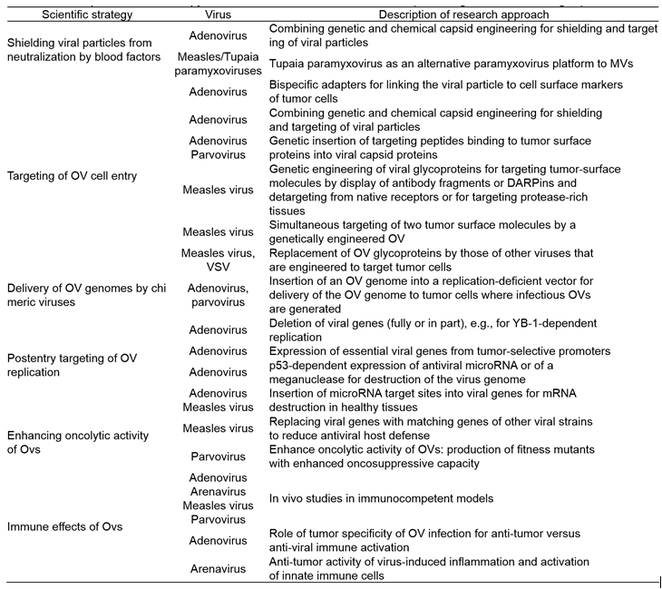 (테이블 3). Recent preclinical virotherapy research activities in German academia (과학적 개발 전략)