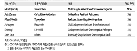 (표 3) 국내 주요 항생제 개발 동향(17)
