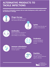 따라서 항생제 개발에 더하여 보다 더 체계적이고 근본적인 대응방법이 요구되고 있다. 상기 WHO가 언급한 백신 외에도 alternative intervention으로서 제시되고 있는 것들이 있는데 그 예로서 미국 CDC의 항생제 내성균 대응 해결 전략(그림 7), 그리고 짐 오닐 팀에 의해 영국정부에 제시된 대체제품들(그림 8) 등이 새롭게 제시되고 있다.