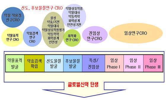 최근 CRO 산업은 신약 초기 연구단계와 전임상, 임상 1, 2, 3상시험, 데이터관리 등의 단순한 연구서비스의 제공을 넘어 제약사의 파트너로서 마케팅, 제조, 판매 등 “total CRO”로서 바이오산업과 함께 고성장을 하고 있다. 한 예로 미국 화이자의 비아그라의 경우는 개발업무의 50% 이상을 CRO에 위탁하여 실시하여 신약개발 기간을 7년에서 4년으로 단축한 바 있다. 따라서 신약개발의 성패는 적극적인 CRO의 활용과 CRO의 역량에 달려 있다 해도 과언이 아니다.