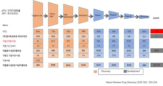 <그림1> 개발 단계별 성공확률 및 비용추정