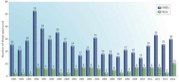 <1993∼2014년 NME 및 BLA 승인 현황>