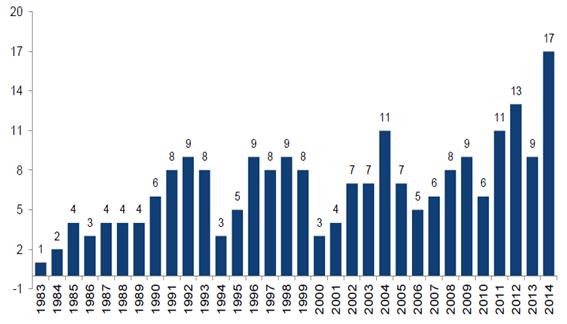 <1983∼2014년 희귀질환치료제 승인 현황>
