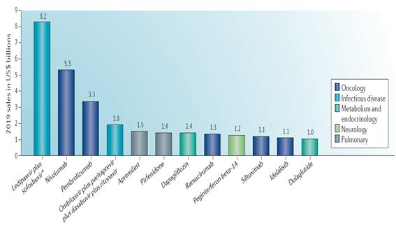 * Sales of Gilead’s combination of ledipasvir plus sofosbuvir are expected to peak at US$12 billion in 2017.